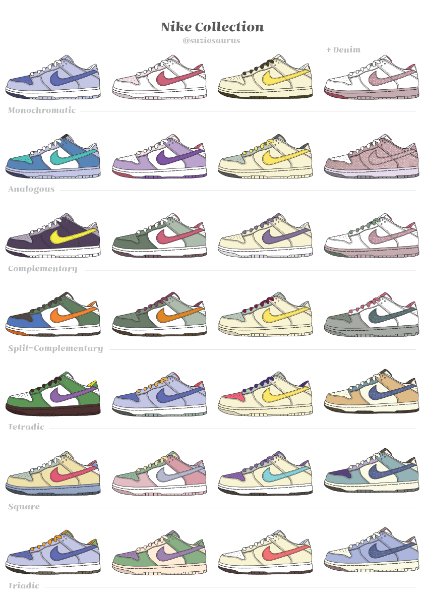 ๋์ดํค ์ปฌ๋ ์ , @suziosaurus ์์ ์กฐํฉํ๋ ๊ฑด ์๋ฌด๋๋ monochromatic์ด๋ analogous๊ฐ ์ฌ์ ๋ค.