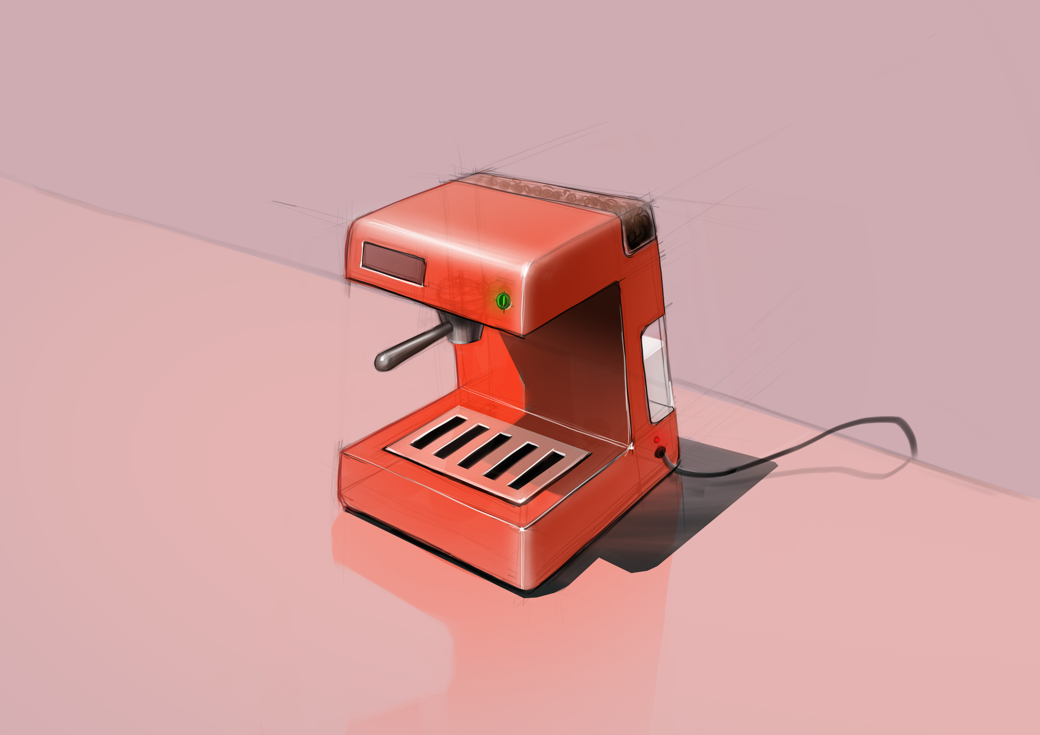 ์ฒ์์ ํ ์คํฐ๊ธฐ ํ๋๋ฅผ ๊ทธ๋ฆฌ๊ณ ๋ญ๊ฐ ํ์ ํด์ ์ปคํผ ๋จธ์ ์ ์ผ์ชฝ ํธ์ ์ถ๊ฐํ๋ค. ๋ ๊ฐ๋ฅผ ๋์์ ๊ทธ๋ฆฌ๋ค ๋ณด๋ ๊ตฌ๋ ์ก๊ธฐ๊ฐ ๋ง๋ง์น ์์๋ค. ์๋ก ๋น์น๋ ๋ฐ์ฌ ํจ๊ณผ์ ๊ทธ๋ฆผ์ ํํ๋ ๊ณ ๋ฏผ์ ํด์ผ ํ๋ค.